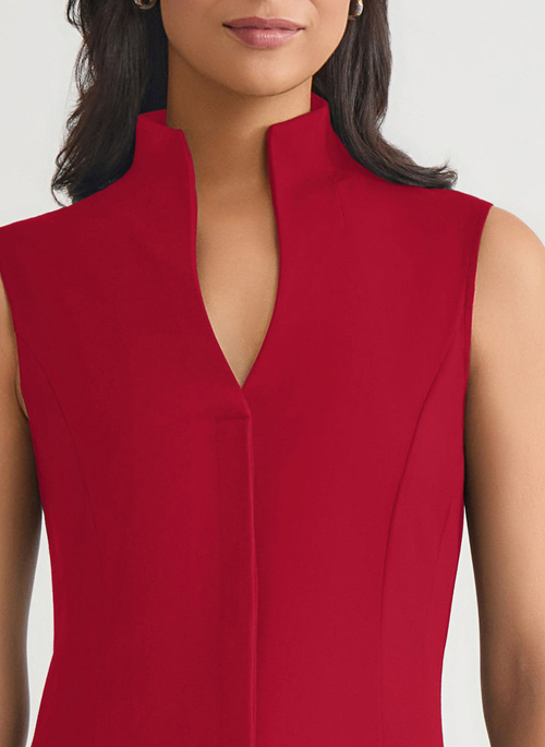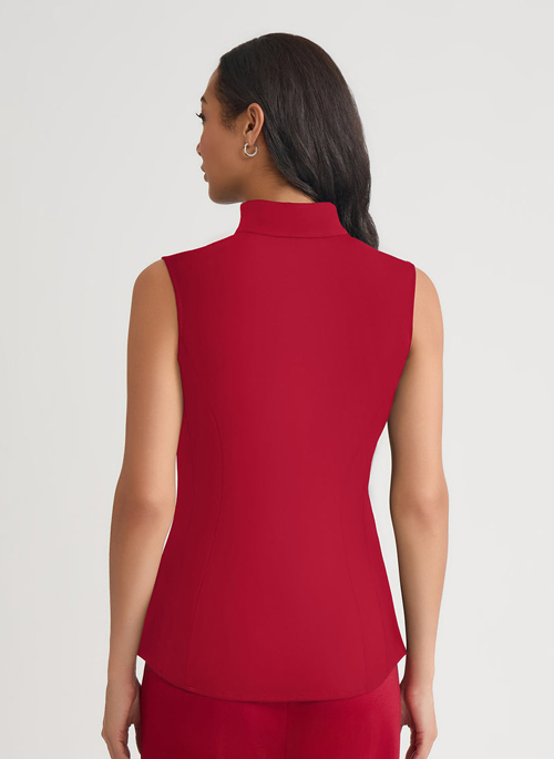 Elevate your ensemble with the refined structure of this Hi-Neck Sleeveless Cotton Blouse. Designed with a modern stand collar and sleek concealed button front, this blouse creates a graceful silhouette that effortlessly transitions from daytime polish to evening chic. The tailored fit flatters the frame, while the breathable cotton fabric ensures all-day comfort.