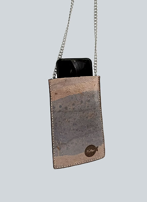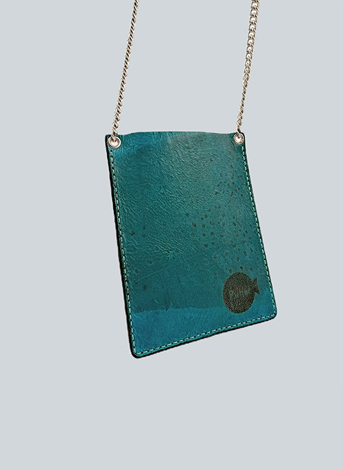 - Exotic pufferfish leather on the front, with a one-of-a-kind natural pattern. Smooth bovine leather on the back for comfort and longevity.
