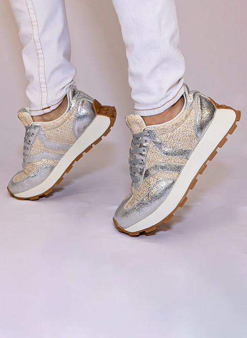 - Silver weave upper and full mesh lining