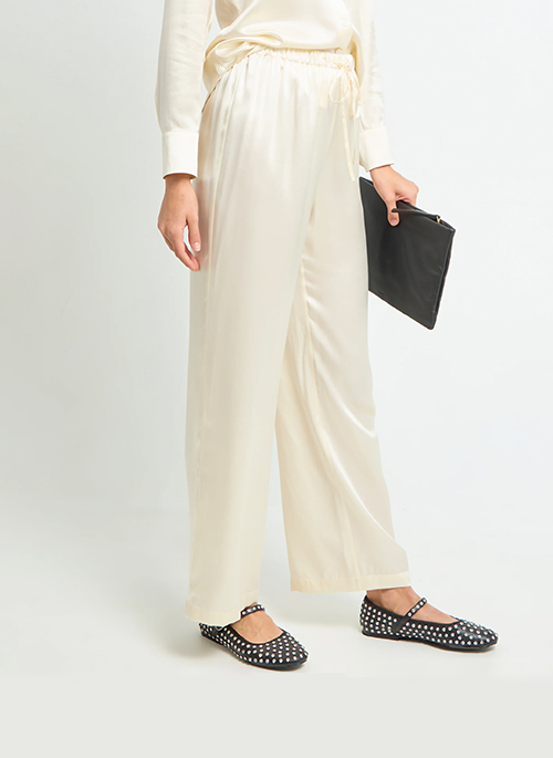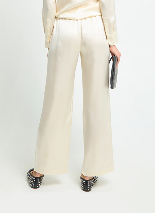 Indulge in ultimate comfort with our Josie Silk Pant. Made from a super soft and silky fabric, these pants provide a luxurious feel. The elastic waistband with an adjustable tie offers a perfect fit while giving you an effortless and relaxed look. Experience the ultimate combination of style and comfort.Details: