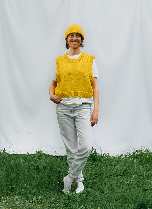 Hand-knitted with love in Charente, the Joie yellow sweater will envelop you in softness. It combines originality, social connection & craftsmanship – each piece is unique. We opted for a modern cut, both wide at the armholes and short in length.