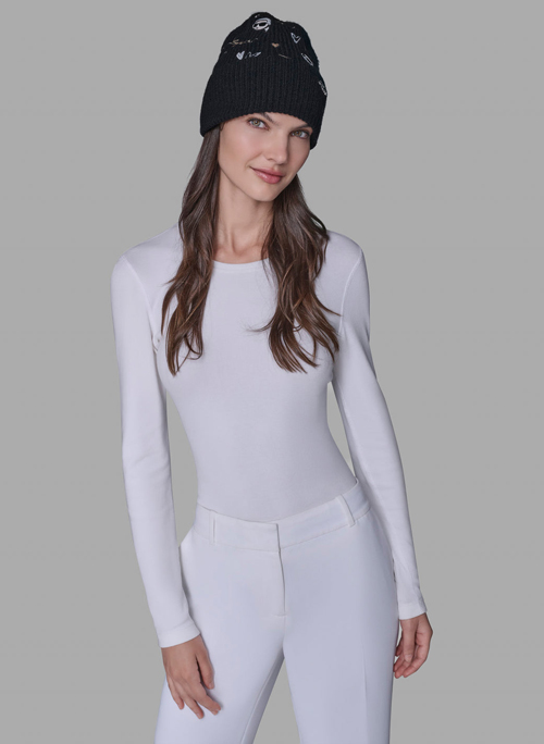 • Rib cuff, Karl script logo plate, Multi-colored embroidery, Shaker stitch knit