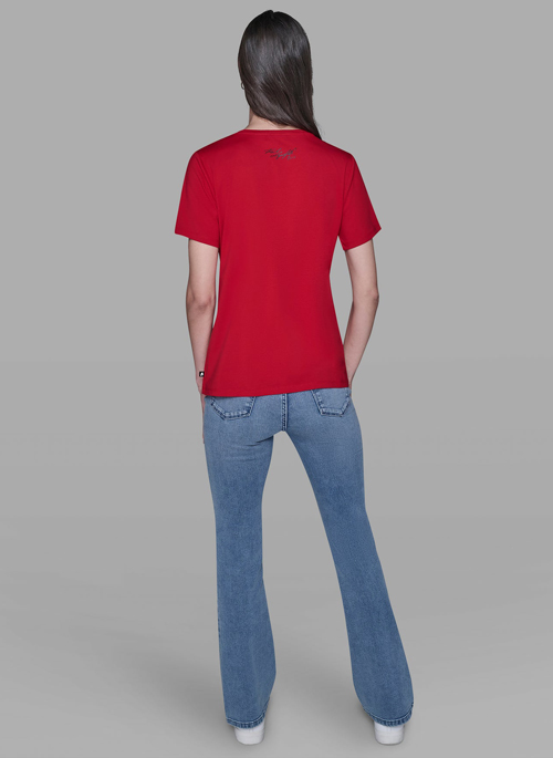 Details:93% cotton, 7% spandexCrew neckShort sleeveSleeve length: 7 3/4''25'' lengthHand wash cold with like colorsImported