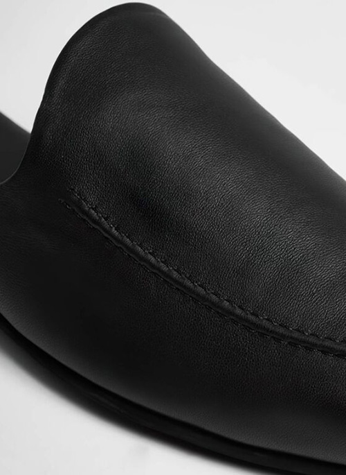Classic leather slippers in an open back style featuring a sophisticated stitch detail.