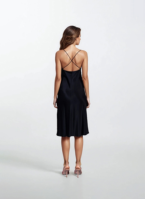 - 30MM heavy Silk charmeuse bias cut Midi dress with criss cross back strap design.