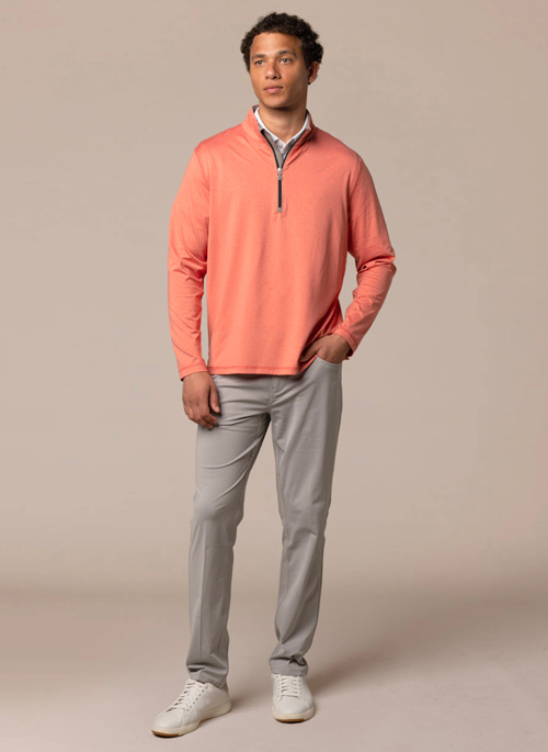 Lightweight and quietly elevated, this tonal quarter-zip delivers stretch, softness, and moisture-wicking performance in a jersey knit that layers like a dream.