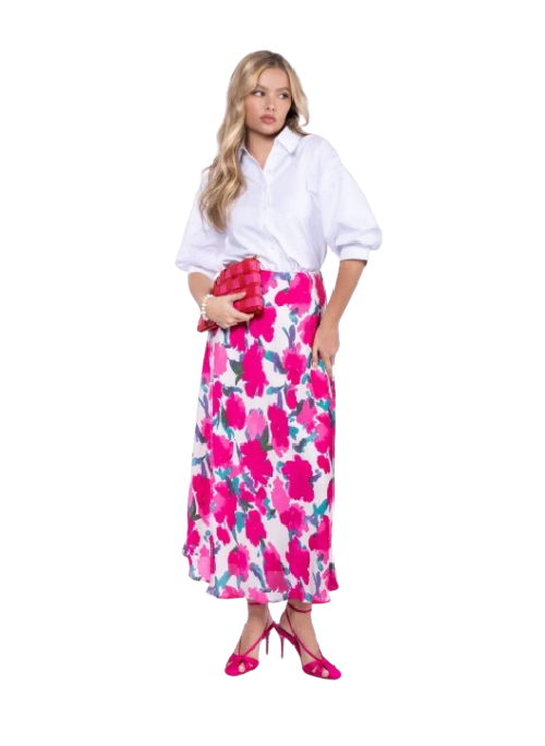 THIS MODERN MIDI SKIRT SHOWCASES A BOLD, ARTISTIC GREEN AND WHITE ABSTRACT PRINT THAT RESEMBLES A STYLISH TIE-DYE OR WATERCOLOR EFFECT. ITS FLOWING A-LINE CUT AND VIBRANT, FRESH COLORS MAKE IT A STATEMENT PIECE, PERFECT FOR BRINGING A CONTEMPORARY, CREATIVE EDGE TO YOUR WARM-WEATHER WARDROBE.