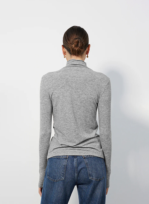 An effortless essential for the season. This long sleeve tee is crafted from lightweight seasonal jersey for a soft, breathable feel that layers beautifully. With its sleek mock neck and fitted silhouette, it's the perfect base for blazers, knits, or cozy outerwear.Details: