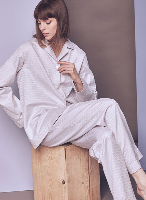 The Luna Pyjama is a beautifully crafted cotton Pyjama set. It is classic in its style with patch pockets on the chest and and piping throughout the Pyjamas. This set is subtlety and tastefully textured, and is featured in an alluring Pearl Grey color. Beautifully presented in our iconic blue Frette gift box.Details: