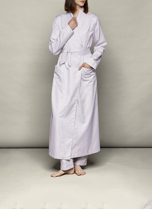 The Luna Robe is a beautifully crafted cotton piece. It is classic in its style with patch pockets and and piping throughout the robe for both style and comfort. This robe is subtlety and tastefully textured, and is featured in an alluring Pearl Grey color. Beautifully presented in our iconic blue Frette gift box.Details: