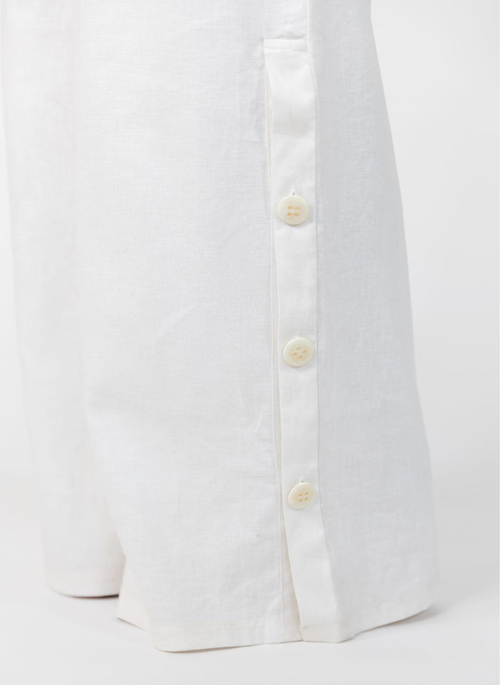 The Maria chic version pants: wide, well cut, with slits subtle on the sides and a row of buttons. Made of natural linen, it highlights the silhouette while leaving a great freedom of movement. Perfect for a look at both assertive and comfortable.Details: