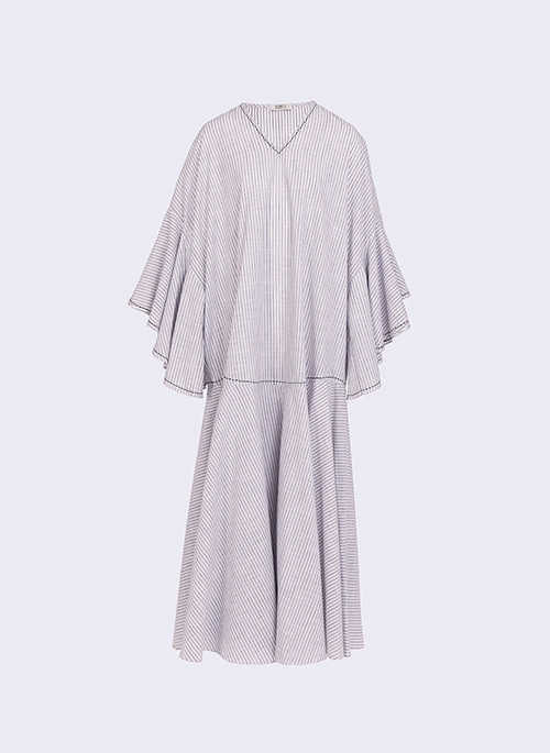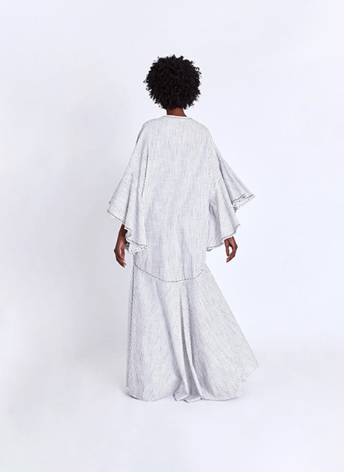 Details: Maxi length, full skirted kaftanHand embroidery stitch detail produced by a Rwandan Embroidery Cooperative on neckline, sleeve and skirt hemV neckLong length