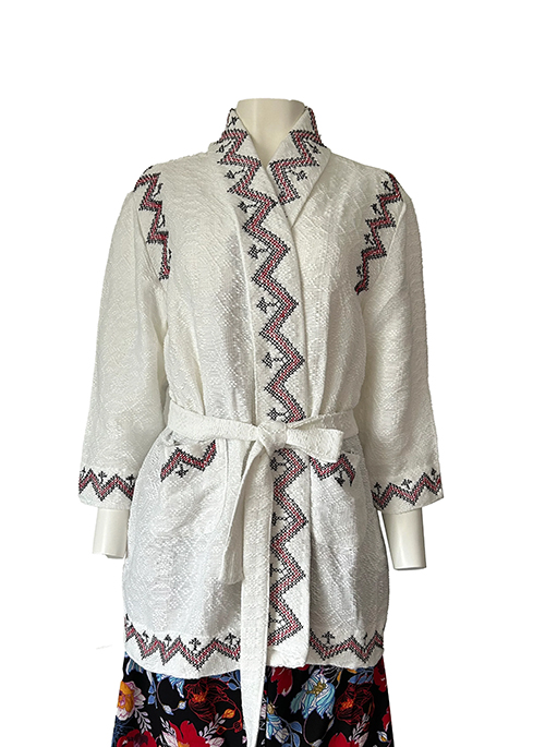 • 3/4 sleeve lounge jacket with shawl collar & embroidery details
