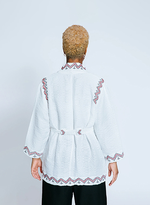 In the northern part of the Philippines, local artisan weavers in La Union were struggling to keep their traditional craft alive. Like our work with indigenous tribes of the southern Philippines, preserving & perpetuating ancient cultures is of utmost importance so they don't disappear. In collaboration with bespoke brand WVN, KINdom sourced robes made of handwoven "inabel" textiles in the softest of cotton jacquards, sent them to our indigenous T'Boli embroiderers in the south for their handcrafted magic, and voila! The KINdom x WVN "Maya" lounge jacket is born out of loving hands of La Union weavers and T'Boli indigenous embroiderers. No two are exactly alike.