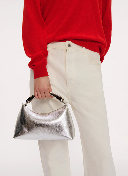 The Metal Handle Rhea blends soft, slouchy sophistication with modern functionality. Crafted from Italian lambskin leather, it features a single compartment and a striking metal top handle adds a sculptural, modern touch.Details: