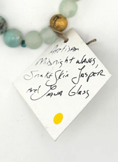 ARTISAN MIDNIGHT WAVES, SNAKE SKIN JASPER AND JAVA GLASS.Details: Length: Adjustable