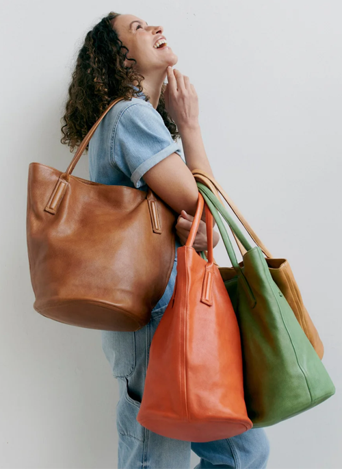 An ode to the timeless allure of circular basket totes, how we love the rustic elegance of our leather Miles tote! Strong hidden magnetic closure pinches bag secure while maintaining a graceful, rounded silhouette. We love the subtle trapunto handle details (three-dimensional effect) which elevate this classic look to perfection. Interior leather back wall organization keeps everything you need in place + easy to find.