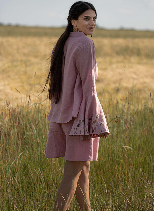 Details: 100% organic linen 100% handmade Handmade embroidery Washed linen 150 g/m2 Can be worn as a jacket or as a shirt