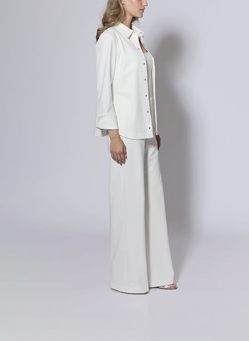 Details: A lighter version of our classic miracle stretchModern metal snaps at frontExtended "French cuff" detail 26 inches at center backFabric imported from Japan87 Nylon 13 Polyurethane Dry Clean Only