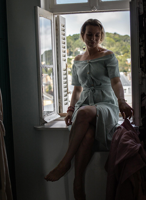 Details: 100% organic linen 100% handmade Knee length Sold with the belt but you can choose the more casual mode 180 g/m2 Washed linen Handmade wooden buttons