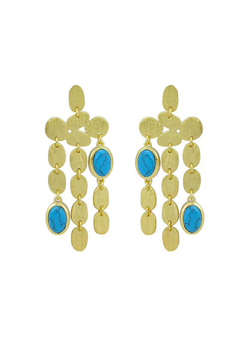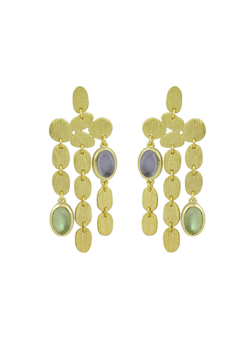 Details: 18k gold plated chandelier drop earrings with asymmetrical stone inlay. Measures 2 inches Made in Brazil