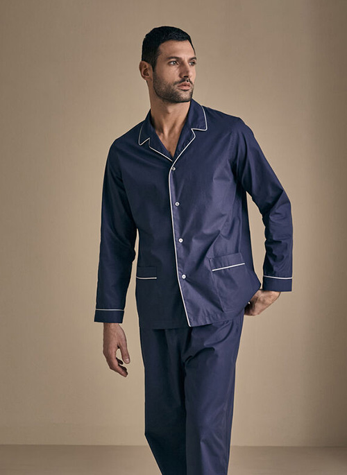 The Noblesse Pyjamas from Frette is crafted from 100% cotton sateen making these Pyjamas incredibly soft. Finished with a button front closure, contrast piping, and patch front pockets.Details: The model is 187 cm tall and is wearing a size M.