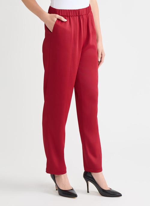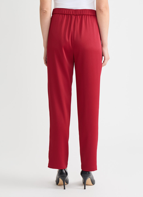 Our pull-on Crepe De Chine pants feature a no-roll elastic waistband, which ensures comfort with wear. With functional pockets, these pants are a practical piece perfect for any wardrobe.