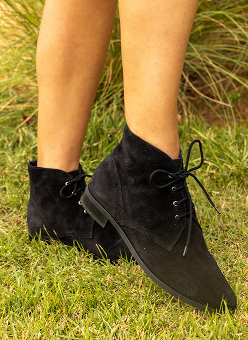 The Olivia boot is made of suede and features a classic design with front laces for adjustment, as well as a rubber sole that ensures greater stability and comfort when walking, making it perfect for creating versatile looks, from work to casual chic.