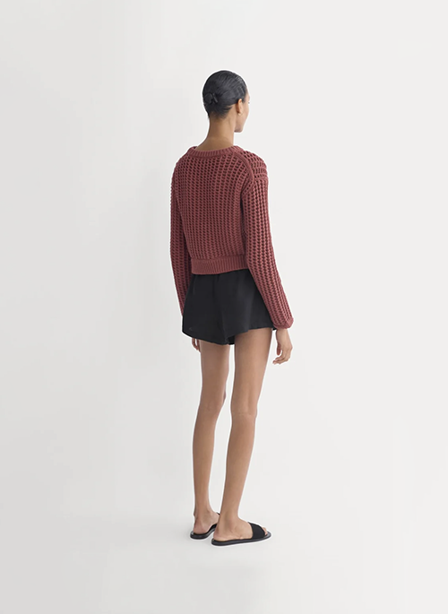 The perfect transitional layer. This wide crewneck sweater features a slightly oversized fit that hits at the high hip for a cropped feel. Made with an open, mesh-like stitch for texture and breathability. Easy to throw on over a tank, pair with denim, or layer into warmer days when you still want the comfort of a sweater.Details: