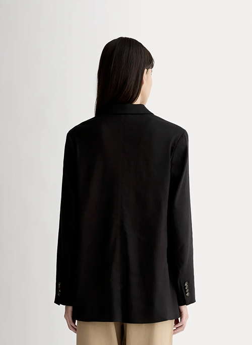 Up your style game with an oversized linen blazer. This piece features a single-breast silhouette with two button closure, oversized fit, flap pockets, cuff buttons, and fully lined in a heavyweight stretch linen blend. Because we all need a blazer for every season.Details: