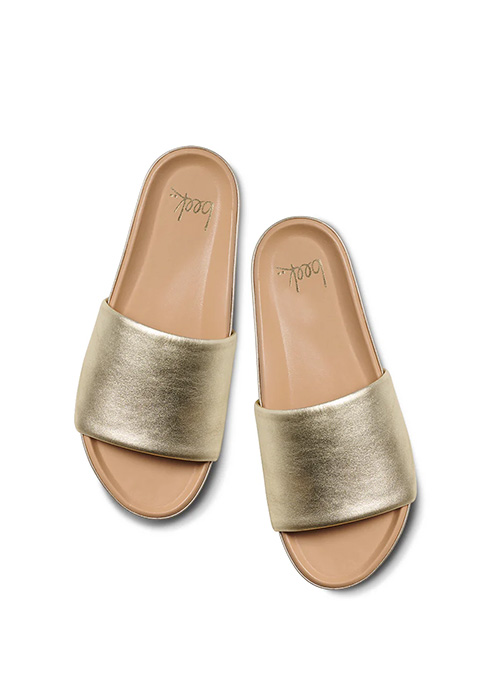The PELICAN slide is a leather-wrapped memory foam molded footbed platform sandal (now that’s a mouthful!). The molded footbed will provide arch and overall foot support and the memory foam will give cushion to the sole. The upper is 100% leather and the outsole is rubber for an easy all-surface grip.