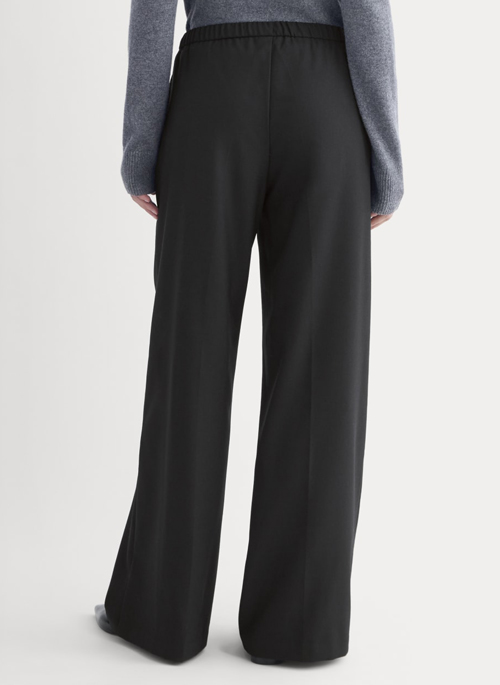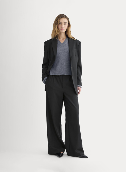 Your most comfy full-length suit pant ever, it combines a wide leg and pressed crease with a drawstring waist for added ease. Half-lined to keep it soft against your skin, there's no itchy wool here—just a RWS-certified wool blend with a touch of stretch for comfort. Pair it with a matching blazer for a comfier, modern take on suiting, or top with an oversized shirt or knit.Details: