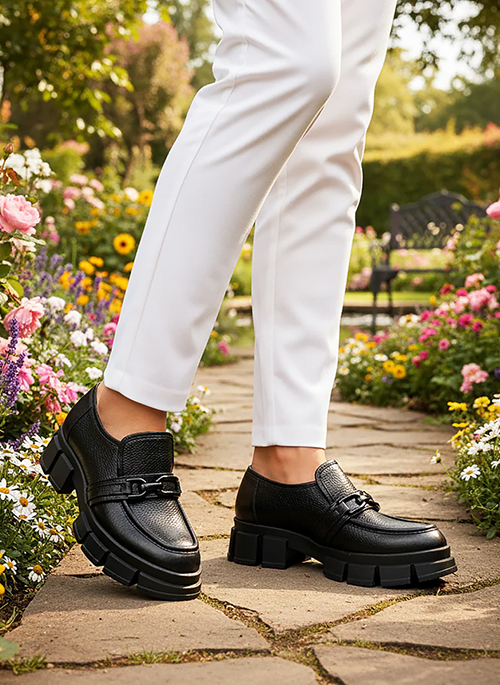 Ultra-light classic round-toe shootie crafted in soft pebbled leather with a large front elastic hidden under the tongue for easy entrance. The pair features a lug sole to isolate your feet from the cold. The style is elevated with a decorative link chain.Details: