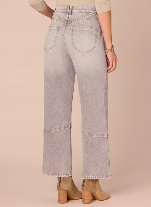 This upcycle-inspired Relaxed Straight Leg jean is a true straight-leg with a more relaxed fit made for all-day comfortable wear. Engineered with an uneven back yoke, round pockets, front seams, and "Ab"solution® fit technology to smooth, support, and enhance your shape—giving you everything from a flatter tummy to a perkier rear view.