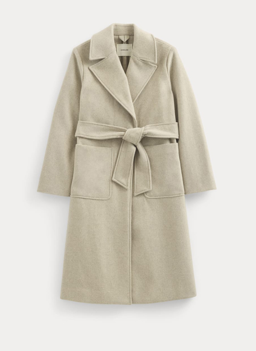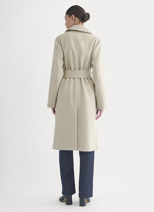 This polished, long, belted coat features a hidden snap closure, notch collar, and front patch pockets. Made with a double-face GRS-certified recycled wool blend, lined sleeves make it easy to slip into—while the unlined body gives a more drapey fit. Working with whatever’s in your closet—both dressy or casual, consider this your new cold weather go-to.Details: