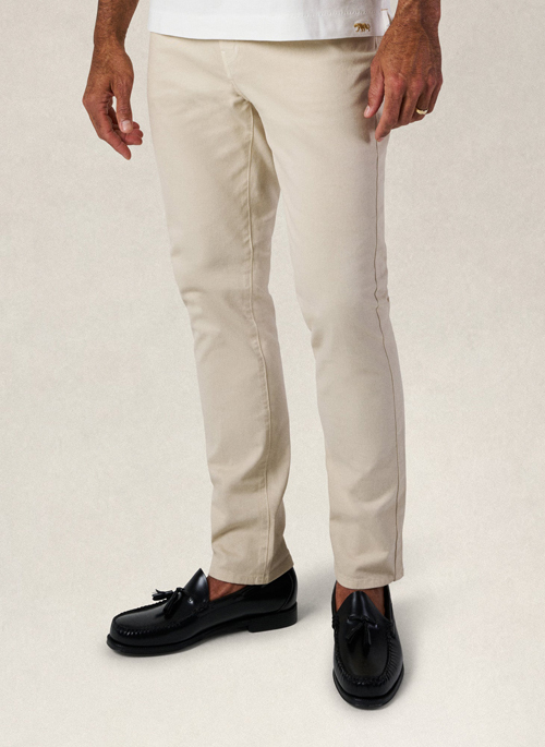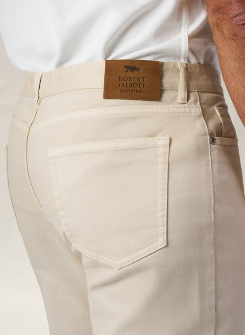 Our signature 5-pocket pant, made in Italy from luxurious cotton stretch twill, perfect for year-round wear. It combines classic style with modern details, like antique brass shank and rivets, and a special inner waistband finished with signature Robert Talbott gold and blue piping. Durable, comfortable, and polished, the Rockwell is versatile enough for lunch and leisure.