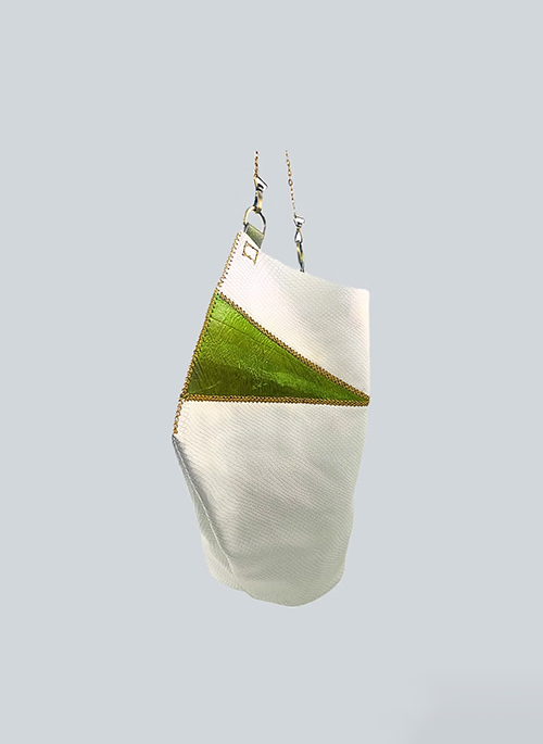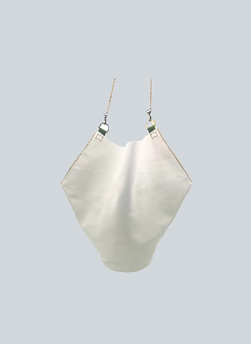 SaharaWild, radiant, and untamed—Sahara blends desert elegance with bold textures. This striking variation of our signature bucket bag pairs creamy reptile-embossed bovine leather with matcha-toned pufferfish panels, creating a tactile balance of softness and strength.Details: