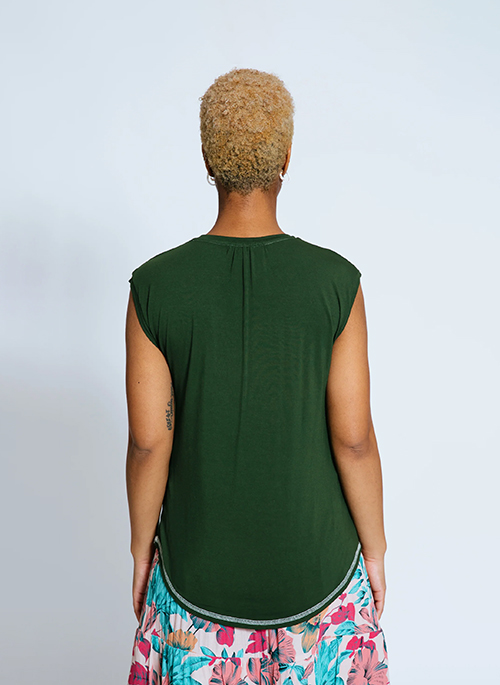 Our Forest Katey overdyed top was upcycled in collaboration with Suay and their community dye project. This scoop-neck, shirttail hem top is a great basic, and even more great that it's made from sustainable bamboo jersey. It's so soft that you'll want to sleep in it! Collect them in all the colors available - it's the only one you'll need for errands, for work, and for traveling.Details: