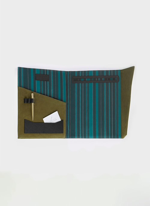 The Skew notepad holder in fine nubuck leather exudes a sense of luxury every time you open it. Perfect for a business meeting or a moment of solitary reflection, it adapts to any setting, designed to hold an A4 notepad for jotting down ideas, thoughts, or sketches.