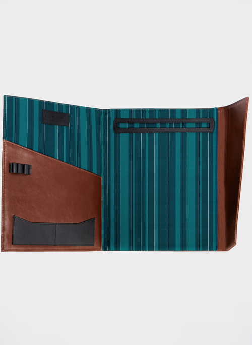 The Skew notepad holder in captivating ocean leather exudes a sense of luxury every time you open it. Perfect for a business meeting or a moment of solitude, it adapts to any setting. Designed to hold an A4 notepad for jotting down ideas, thoughts, or sketches.
