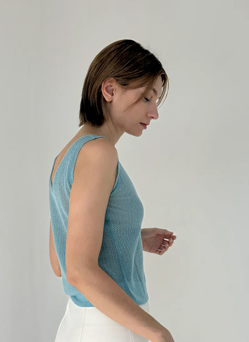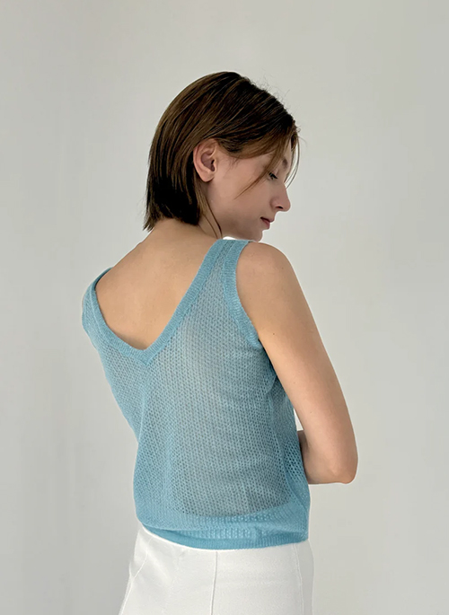 Minimal, breathable, and effortlessly elegant — the Cashmere Blend Sleeveless V in Soft White is your go-to for understated summer luxury. Crafted from a featherlight mix of 65% cashmere and 35% polyamide, this open-knit top offers the soft feel of cashmere with a subtle sheerness that drapes like air.Details: