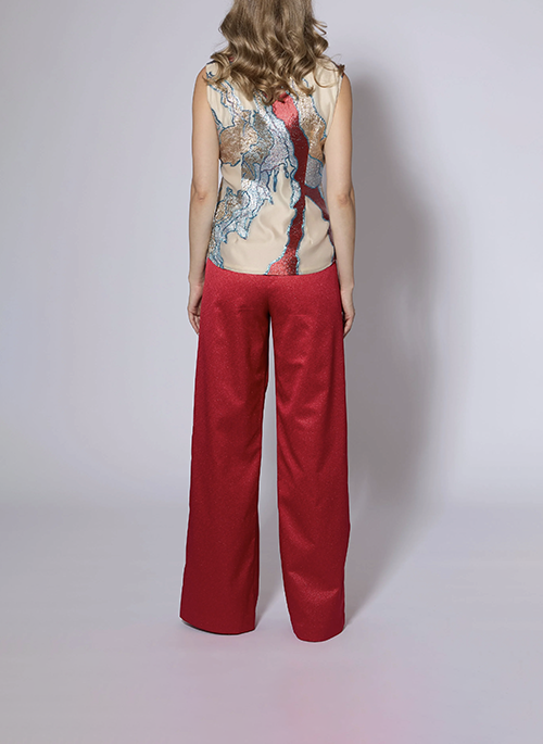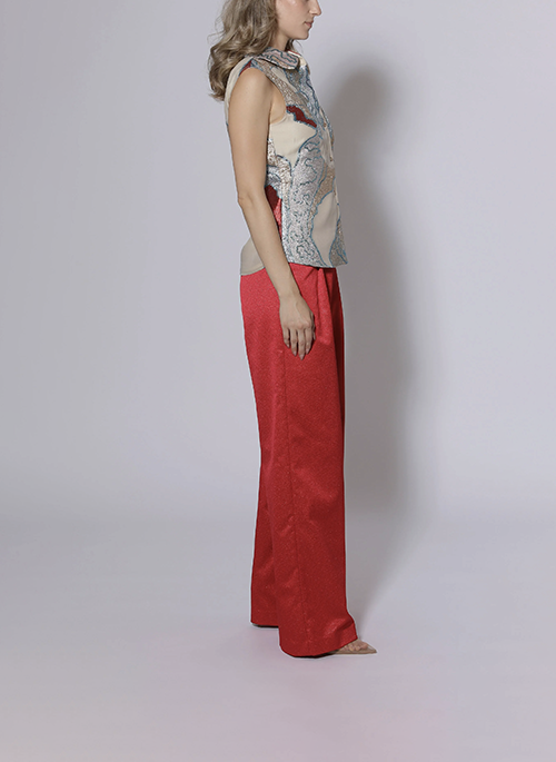 Details: Unique fil coupe fabricRounded collar for soft stylingMatte gold concave buttons at frontSeamed to create fitted silhouette24 inches at center backFabric imported from Turkey85 Polyester 15 LurexDry Clean Only