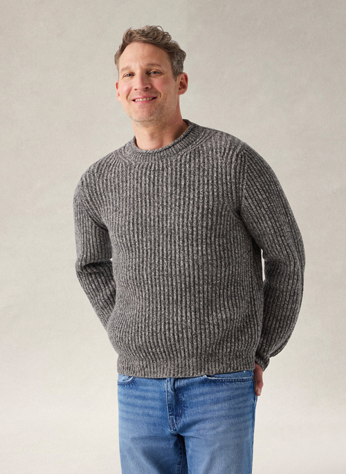 Timeless, understated, and made with intention. The Spencer Rollneck Sweater is knit from a luxuriously soft blend of recycled cashmere and wool, offering warmth with a lighter environmental impact. The rollneck silhouette and heathered grey color make it a versatile cold-weather staple that works in any setting.