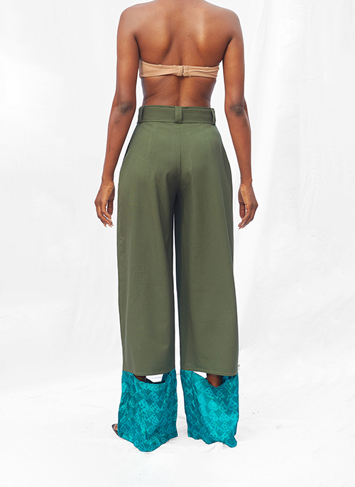 Details: Long culottes. Band waist.Diamond batik design bottom connect, with front and back cut-out details. Inner side pocket.