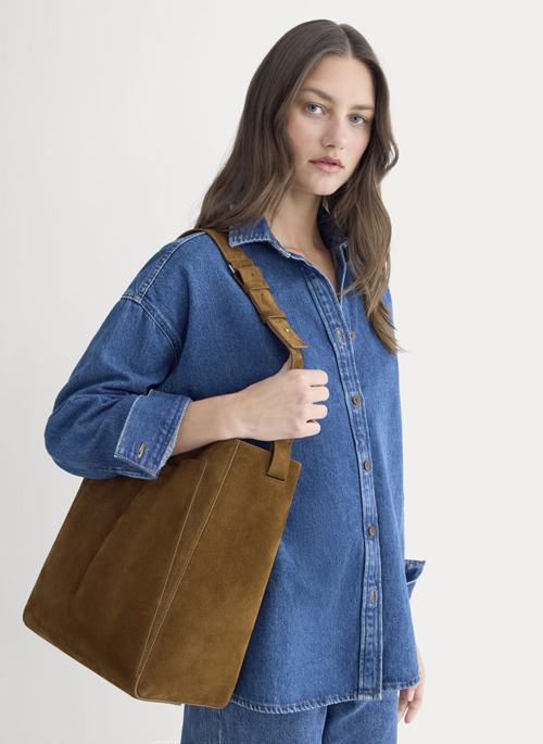 Made of premium leather, the Studio Bag features functional details like an adjustable shoulder strap, a snap closure, and an interior and exterior pocket. Its roomy shape fits everything you need—plus all those just-in-case additions.