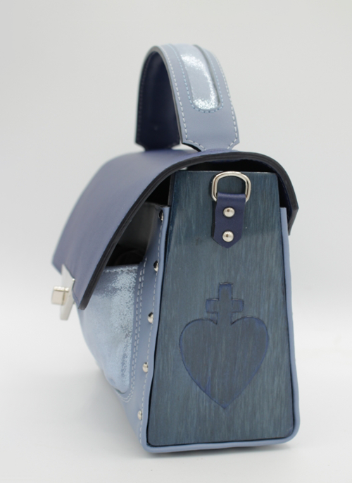 It is made of high-quality blue leather with wooden ribs for an original and trendy effect. The Vendée heart detail adds a touch of authenticity to this one-of-a-kind bag. You're sure to turns heads when you carry it!