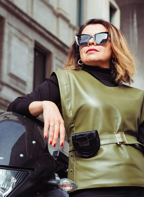 This small, very chic bag can be worn on a belt or as a bracelet.