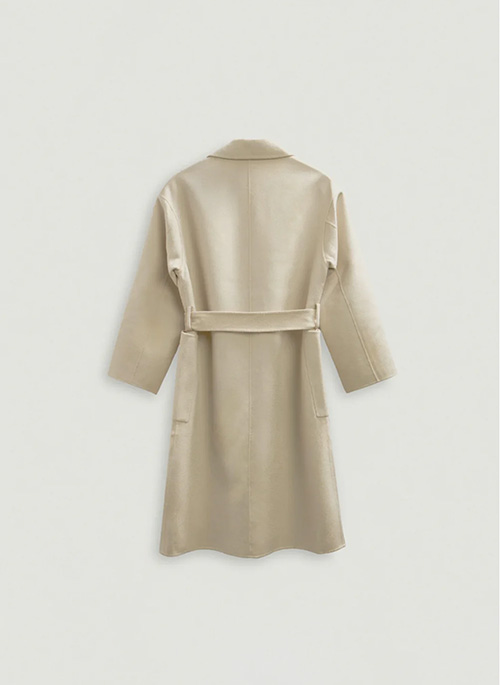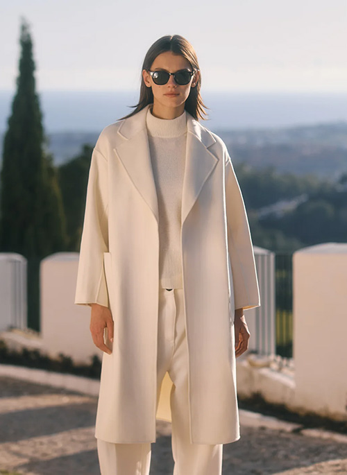 The Coya Pocket coat is inspired by the whitewashed houses of the Andalusian coast. The coat includes a notched lapel collar, self-tie belt, and two large front patch pockets, enhancing both style and practicality. Its clean, unlined design and slightly relaxed fit make it versatile for layering over sweaters or dresses, ideal for achieving a polished, modern winter look.Details: