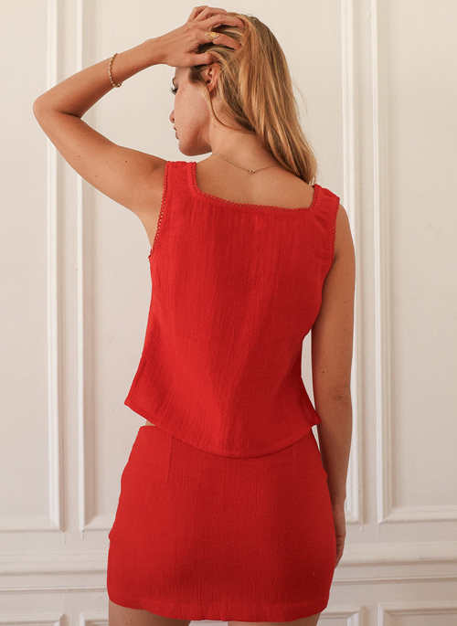 Our new Tidings Top is the perfect option for all your upcoming holiday festivities. A cute linen-style top featuring gorgeous white embroidery and mini bows down the front. Pair with our new Tinsel Mini Skirt to complete the set.