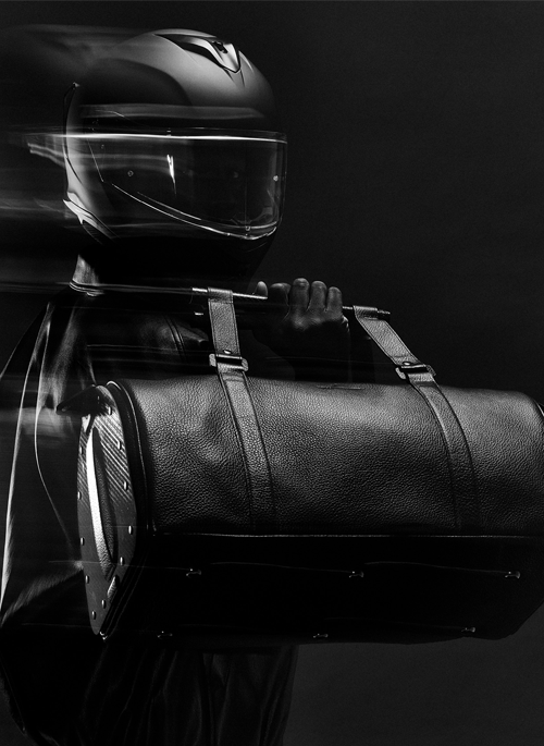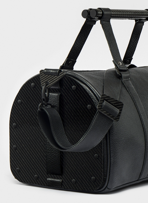 The Travel bag is crafted from ultra-soft hammered grain leather and carbon fiber, perfect for a dynamic lifestyle while maintaining a unique elegance.